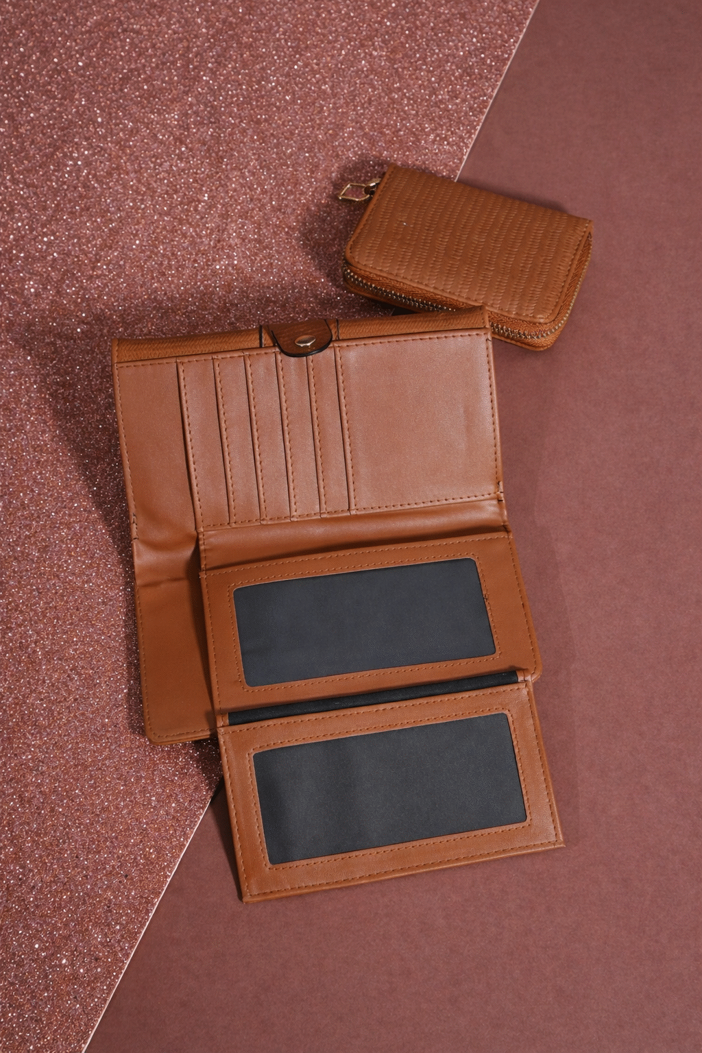 Este conjunto de carteiras combina estilo, funcionalidade e organização num só produto. Com acabamento texturizado elegante e tom castanho clássico, é perfeito para quem procura praticidade sem abdicar do bom gosto.