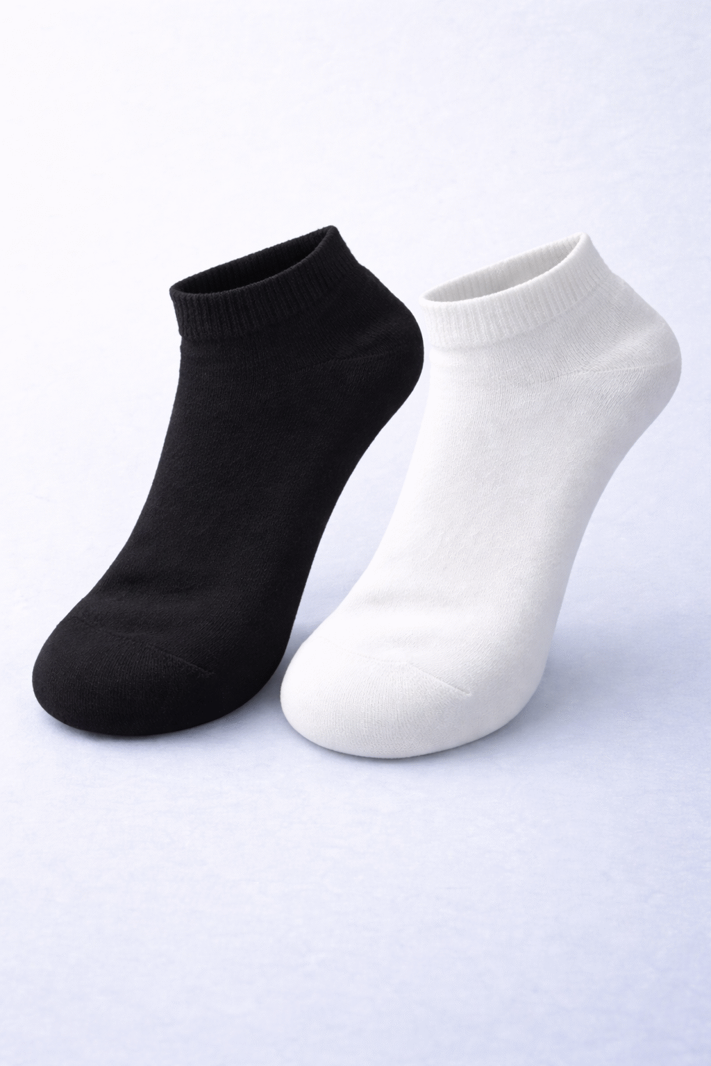 Meia curta preta, perfeita para quem procura conforto e simplicidade no dia a dia. Fabricada com material macio e elástico, adapta-se facilmente ao pé sem apertar nem causar marcas.