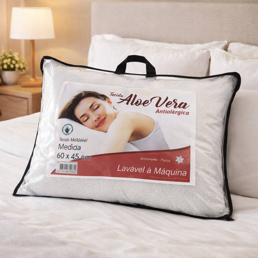 Desfrute de noites mais confortáveis com esta almofada em tecido Aloe Vera, ideal para quem procura suavidade e bem-estar no descanso diário. Com enchimento de alta qualidade composto por 50% poliéster e 50% poliuretano, oferece um equilíbrio perfeito entre maciez e suporte.