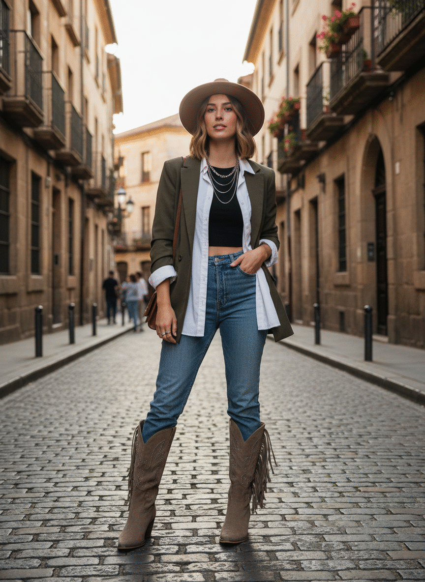 Botas Texanas Femininas com Franjas – Estilo Western Moderno