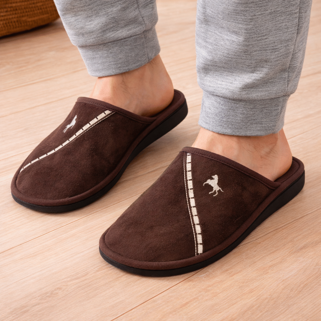 O seu design simples e elegante em tom castanho adapta-se facilmente a qualquer estilo. Possuem interior confortável e sola resistente, perfeita para uso diário dentro de casa.