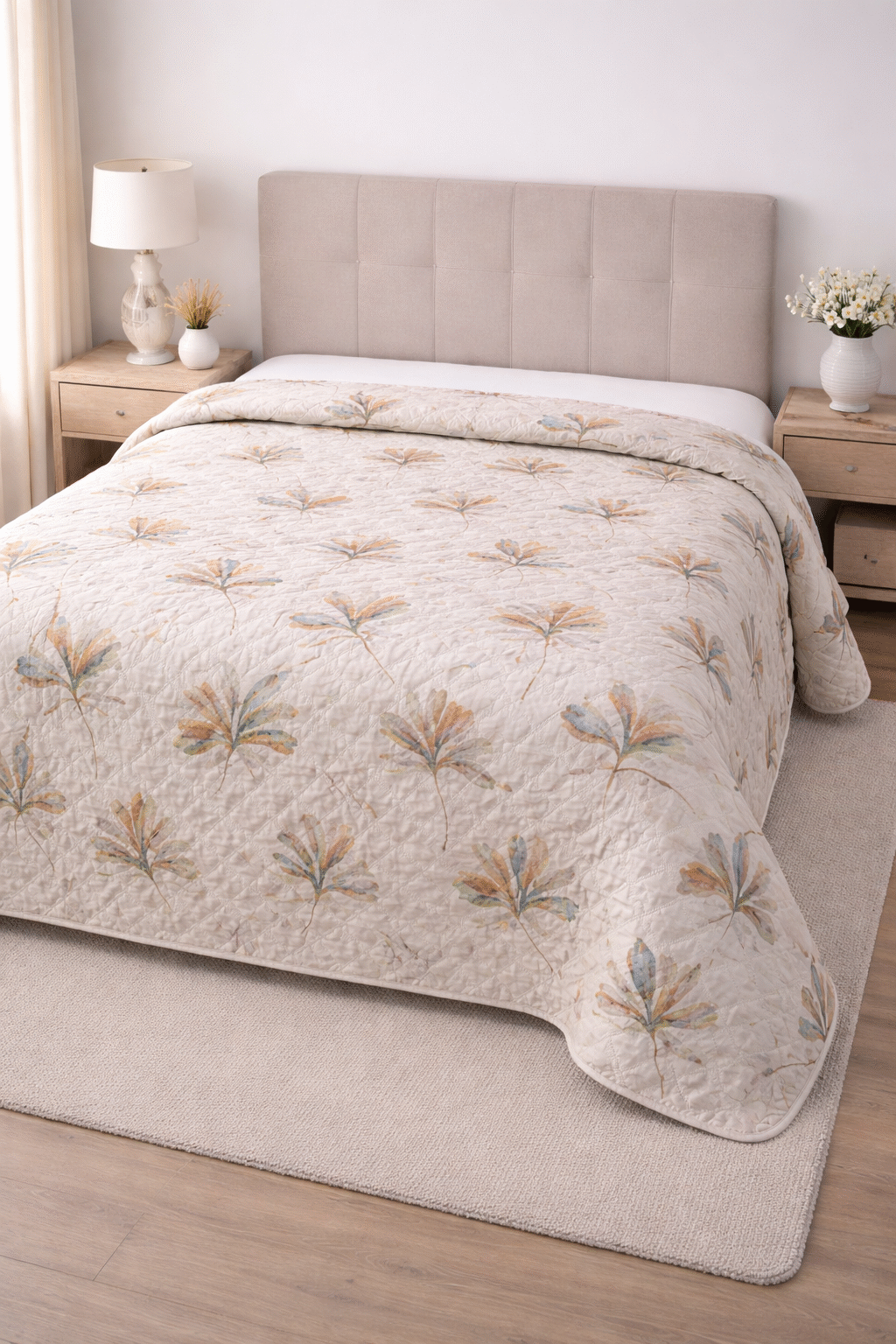🛏️ Colcha Casal 225×240 cm – 100% Poliéster | Padrão Floral Delicado