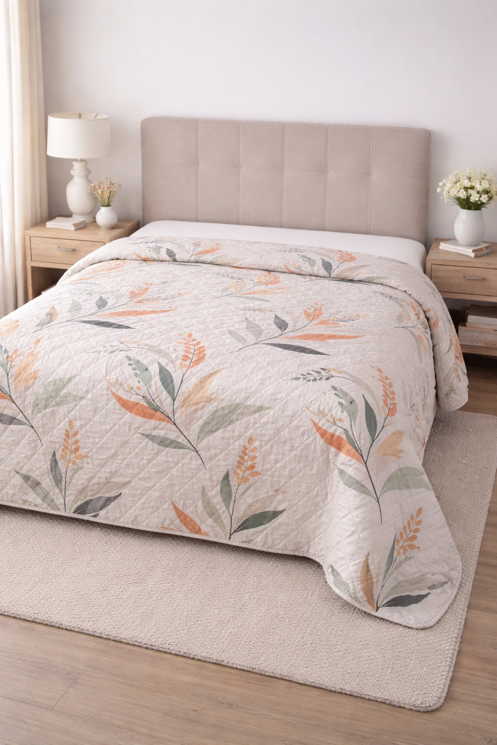 🛏️ Colcha Casal 225×240 cm – 100% Poliéster | Padrão Floral Moderno