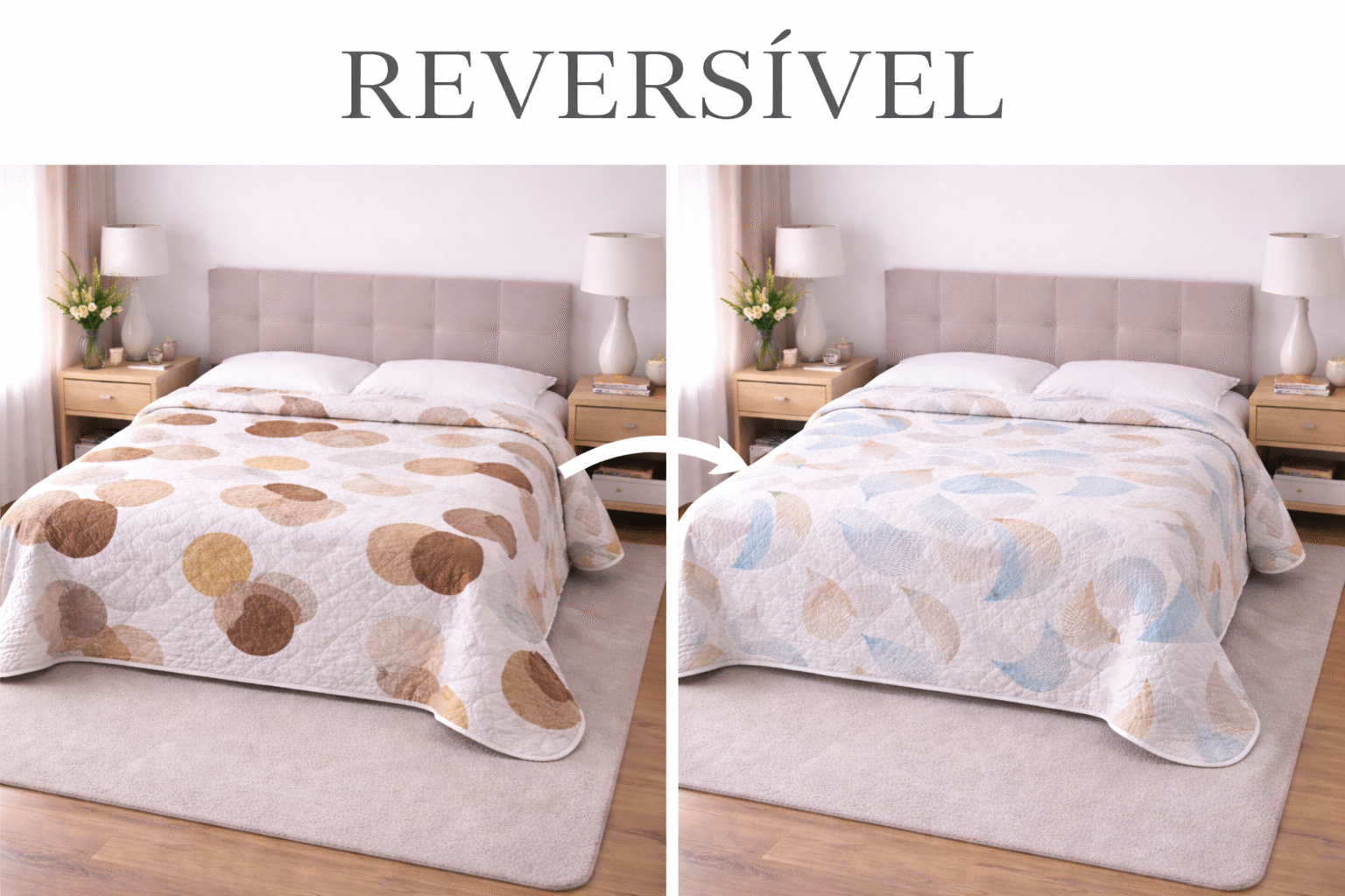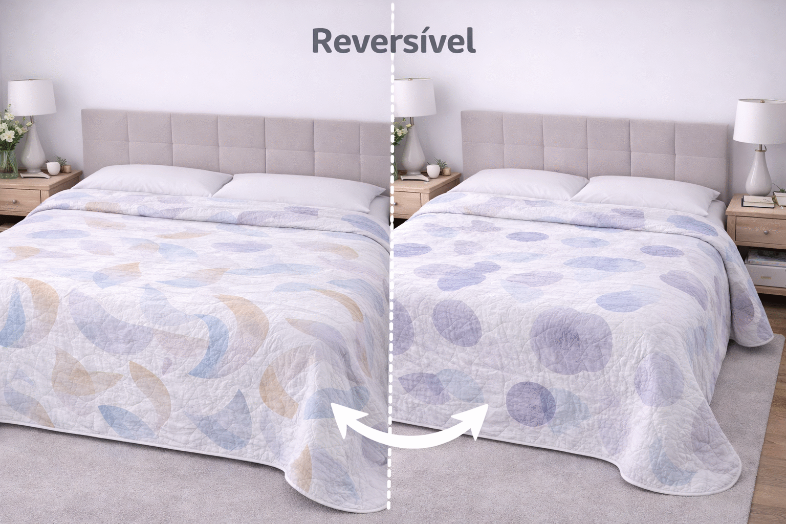 Colcha Reversível 240×260 cm – 100% Poliéster