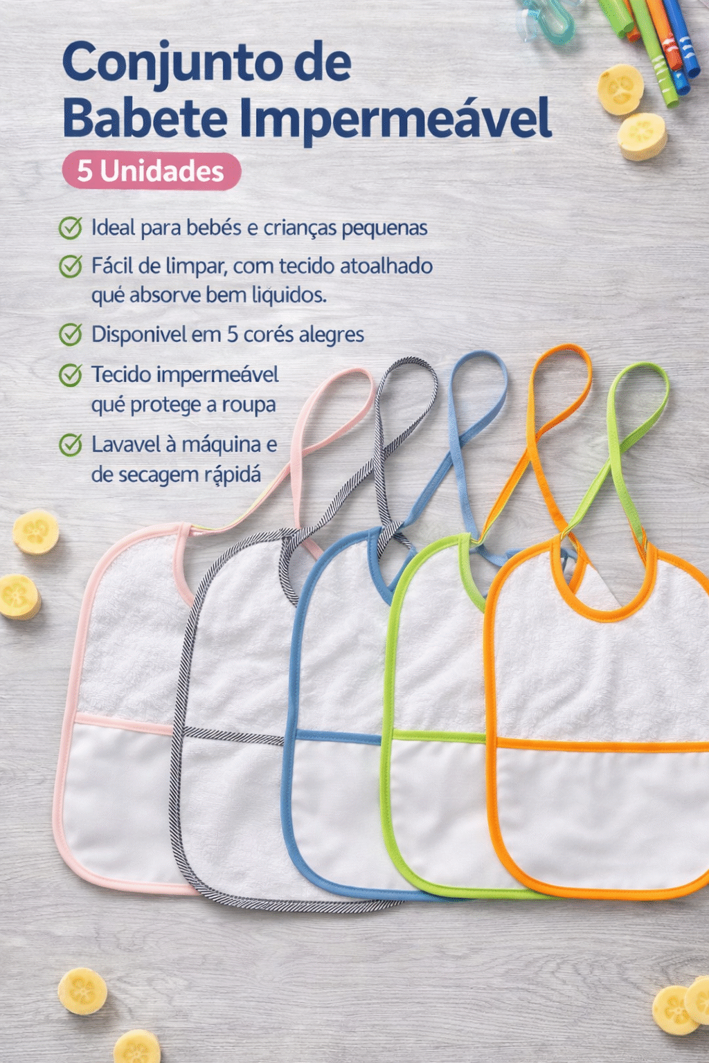 ✔ Conjunto com 5 babetes