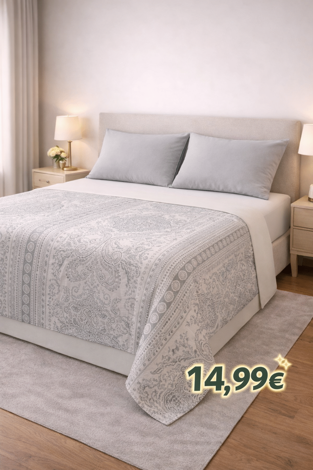 Conjunto de lençóis elegante em estilo hotel, ideal para um quarto moderno e sofisticado.