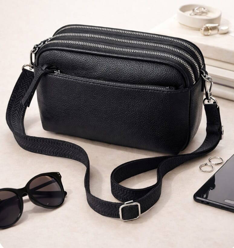 Prática, elegante e versátil, esta mala tiracolo preta é perfeita para o dia a dia. Com um design moderno e minimalista, combina facilmente com qualquer estilo, sendo ideal para uso casual ou urbano.