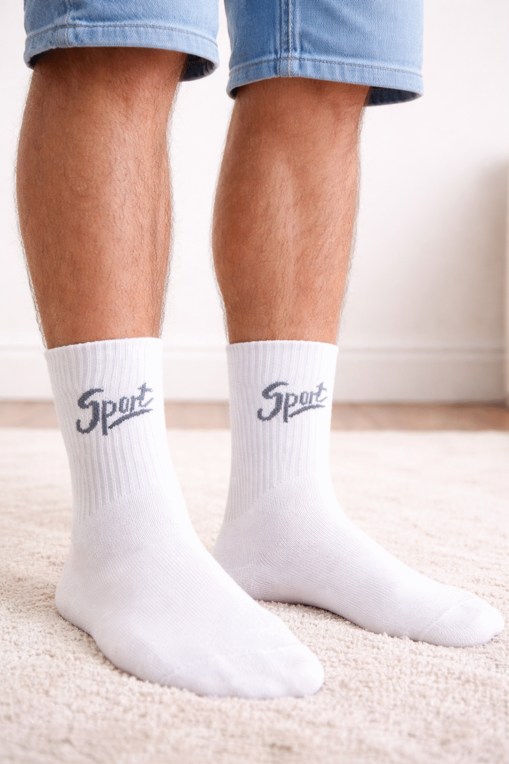 Meias desportivas clássicas, ideais para uso diário ou prática de atividade física. Com design simples e confortável, adaptam-se facilmente a qualquer estilo.