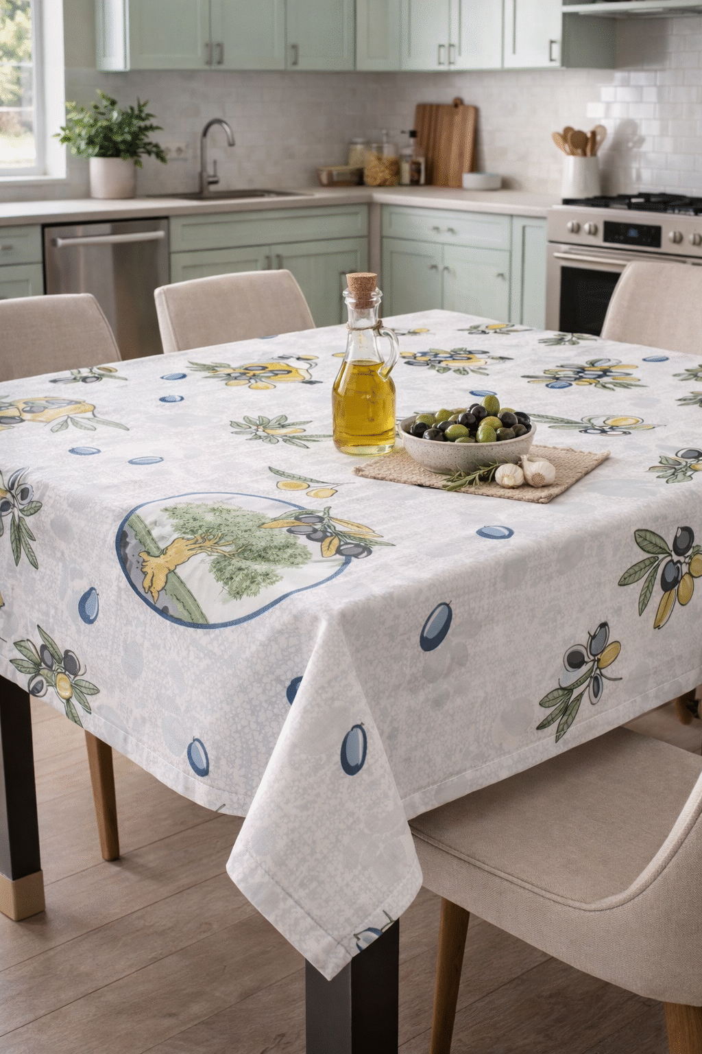 Toalha de Mesa Antimanchas Estampada – Tema Azeitonas 🍃