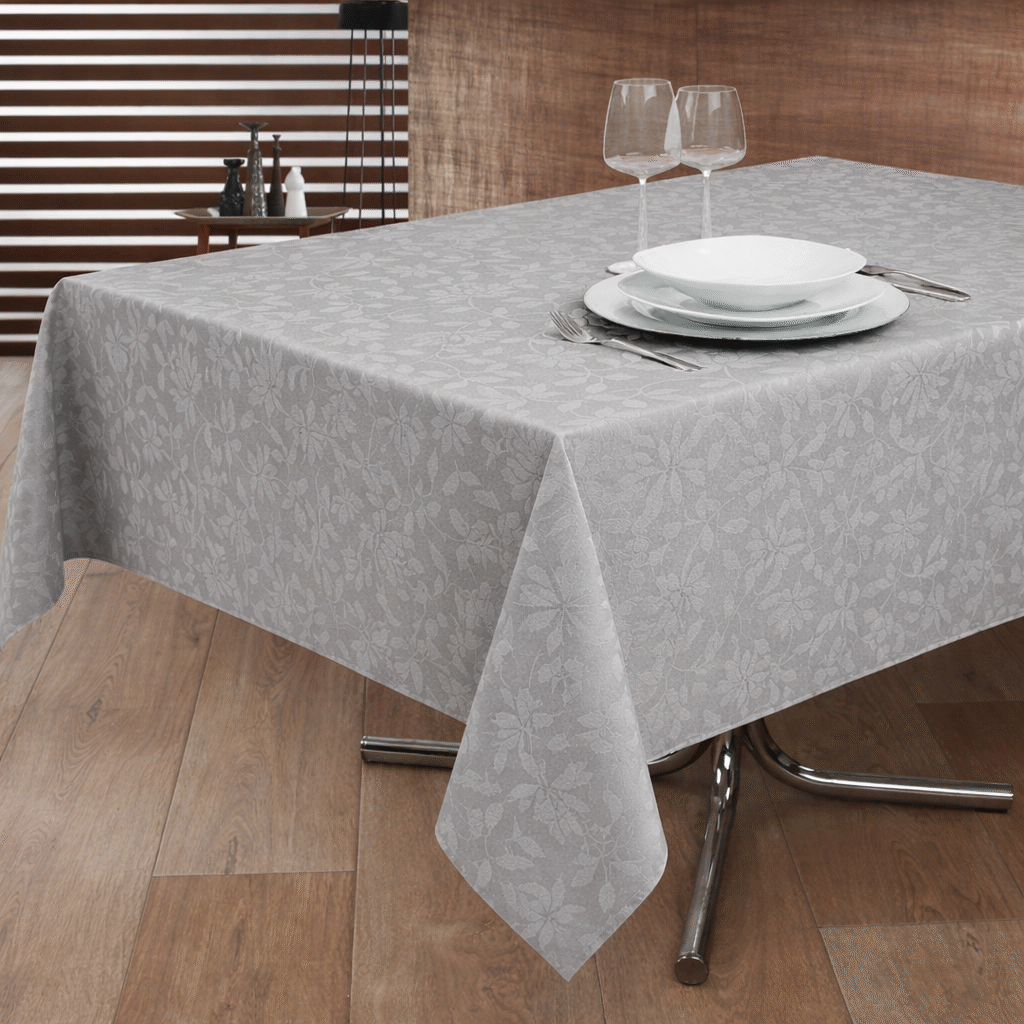 Toalha de mesa elegante em tecido jacquard com padrão floral discreto, ideal para dar um toque moderno e sofisticado à sua mesa é versátil e combina facilmente com qualquer decoração.