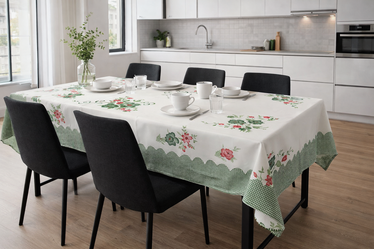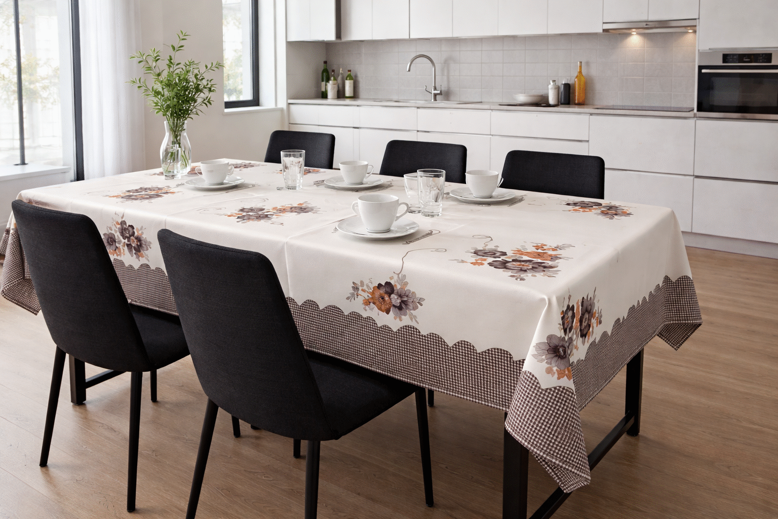 Dê um toque elegante e acolhedor à sua cozinha com esta bonita toalha de mesa de inspiração floral. Ideal para ambientes modernos, combina na perfeição com qualquer decoração, trazendo leveza e sofisticação à sua mesa.