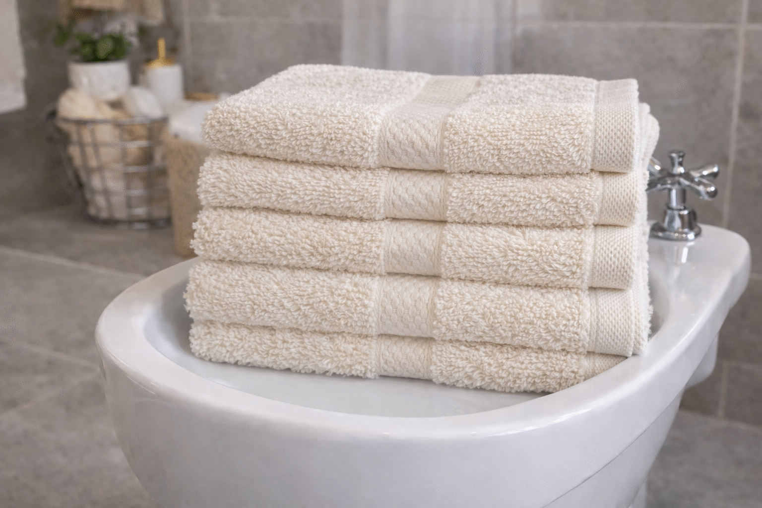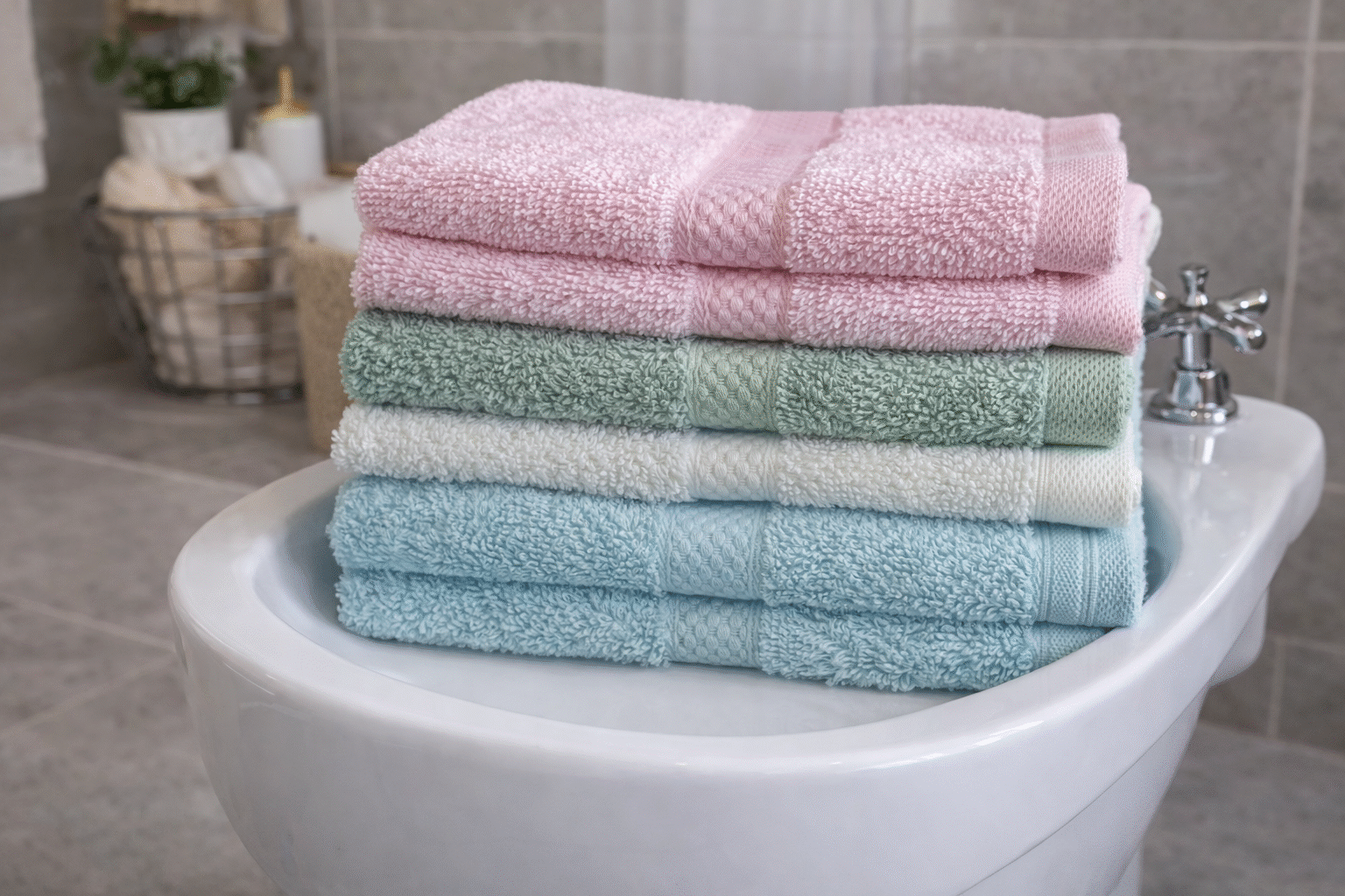 Toalhas práticas e versáteis, ideais para bidé, mãos ou rosto, fabricadas em 100% algodão para garantir suavidade e elevada absorção.