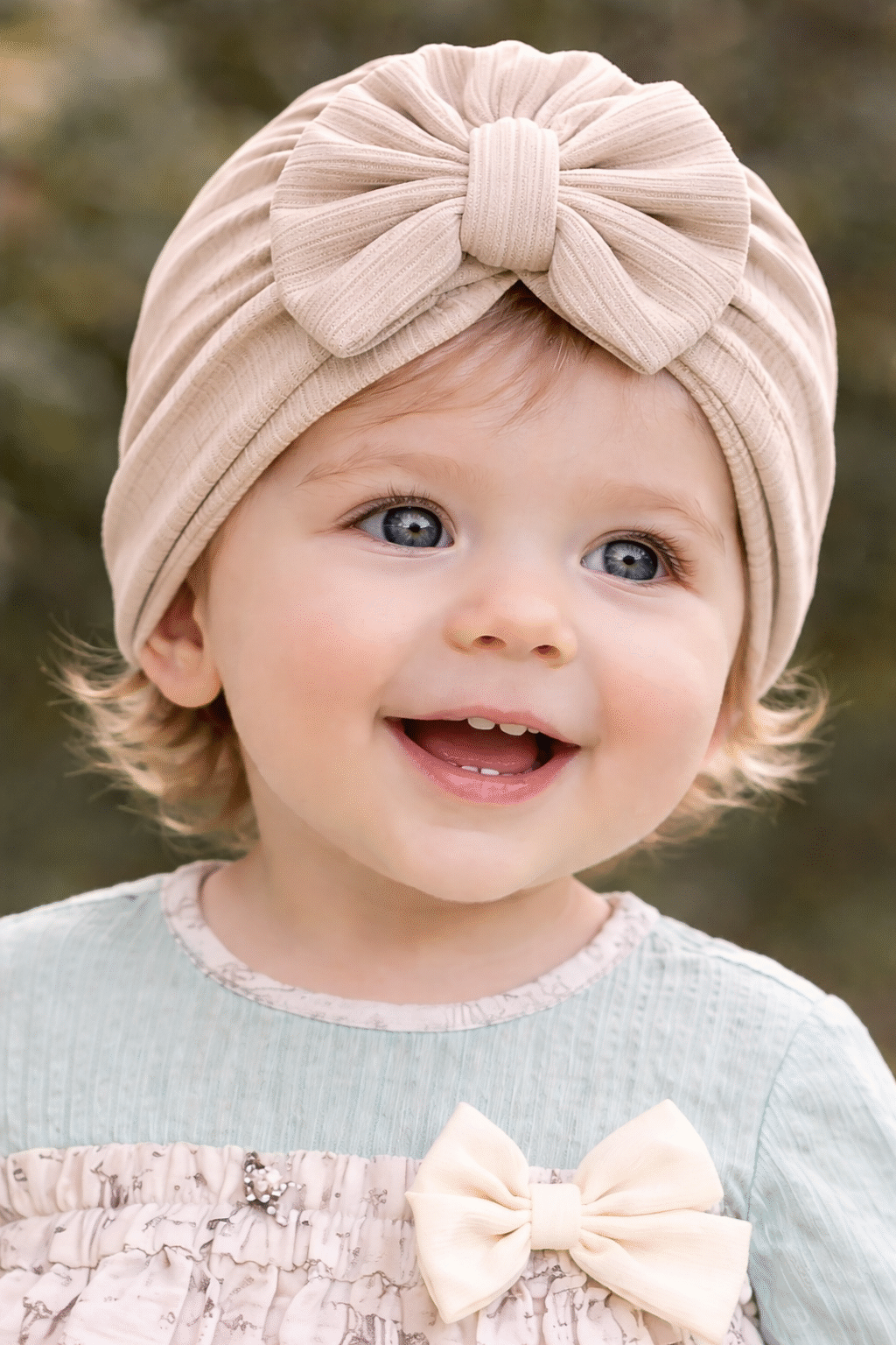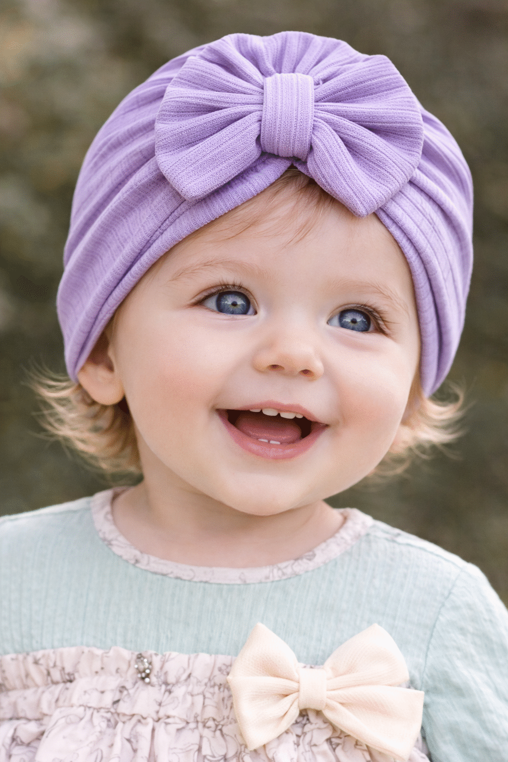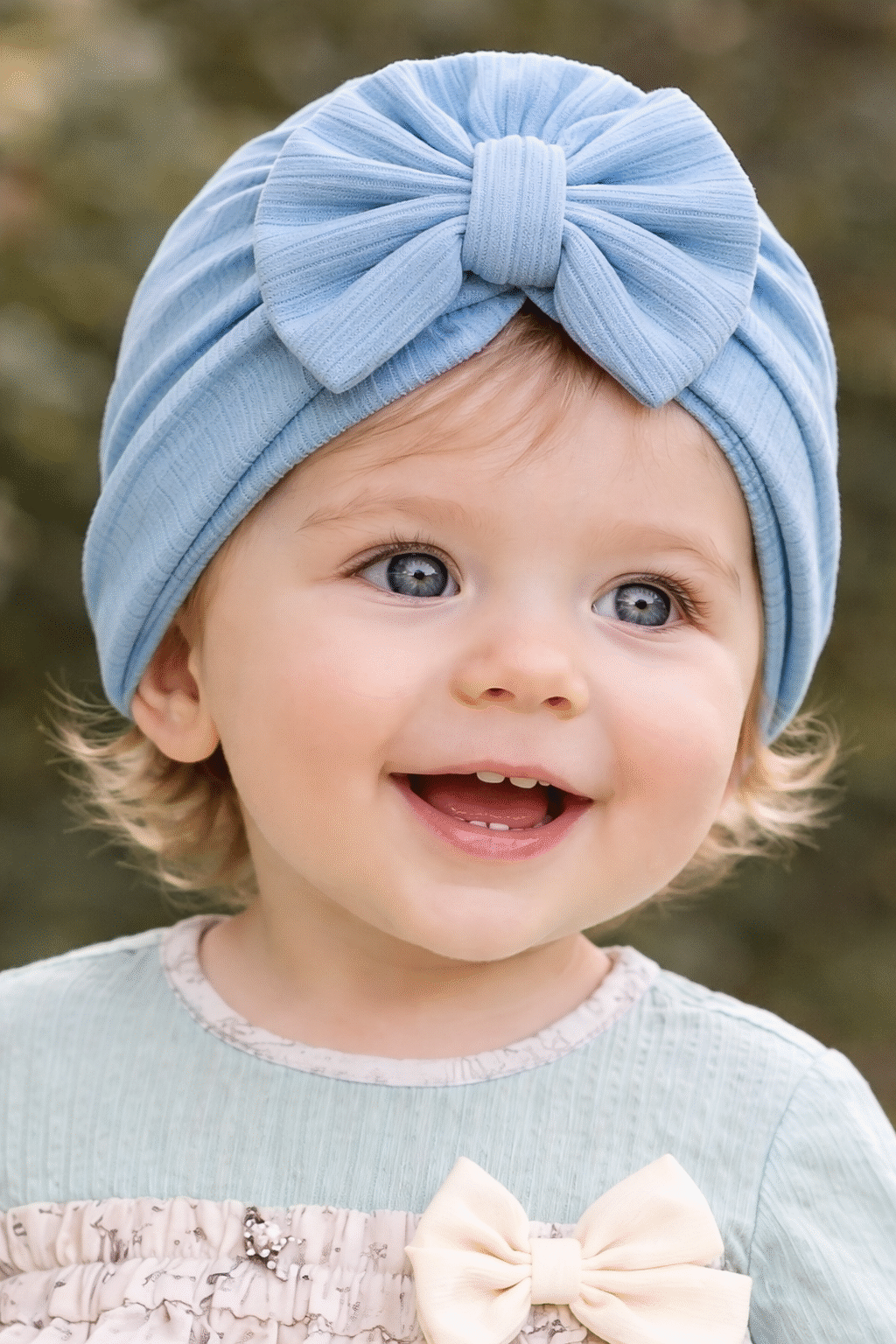 Turbante para bebé com laço elegante, perfeito para complementar o visual das mais pequenas com muito charme e conforto.