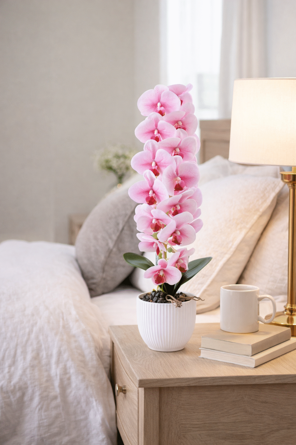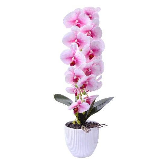 Orquídea Artificial Rosa em Vaso Decorativo – Elegância Natural